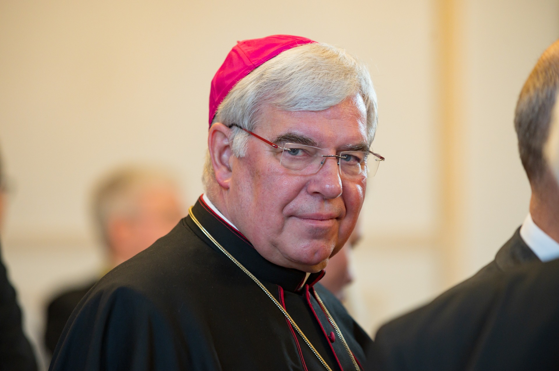 Beeindruckt war ich auch von Anfang an, dass mit dem Synodalen Weg keine Veranstaltung „hinter verschlossenen Türen“ geplant ist, sondern zahlreiche Vertreter und Vertreterinnen von kirchlichen Dachorganisationen sowie von Bischofskonferenzen und Laienverbänden aus Nachbarländern entsandt sind. Für die Evangelische Kirche in Deutschland (EKD) nahm der Vizepräsident des Kirchenamts der EKD in Hannover, Thies Gundlach, teil und wandte sich in einem freundlichen Grußwort an die Delegierten der Synodalversammlung. Dies passte sehr gut zur Tatsache, dass ja die Versammlung der 230 Delegierten wegen Renovierungsarbeiten am Frankfurter St. Bartholomäus-Dom im Großen Saal des Dominikanerklosters geplant war, heute im Haus der evangelischen Landeskirche von Hessen und Nassau ihre Synodenaula. Erzpriester Radu Constantin Miron vertrat die Orthodoxe Bischofskonferenz in Deutschland (OBKD) und Pastor Christoph Stiba die Arbeitsgemeinschaft Christlicher Kirchen (ACK).